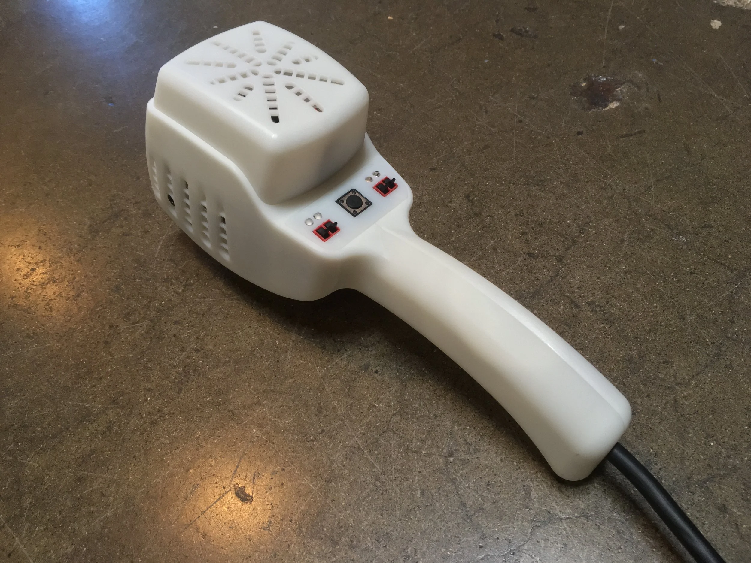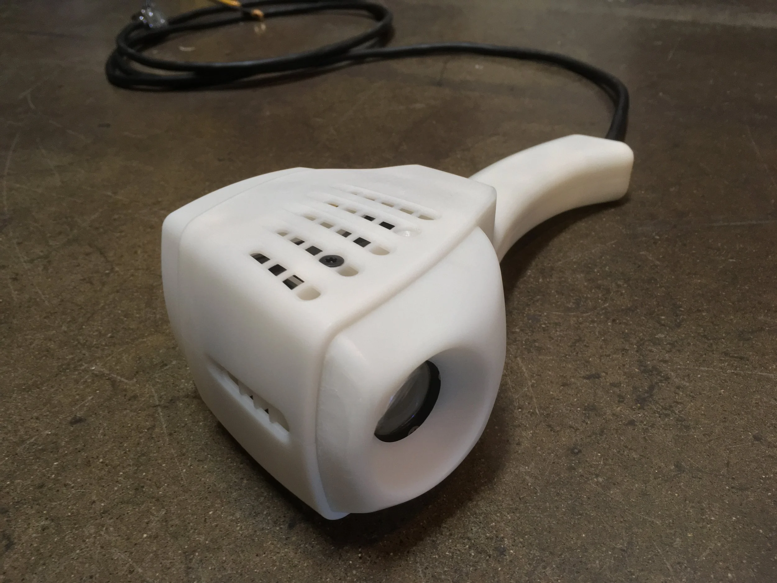 We based the handle on forms utilized by products that have to be comfortable to hold when pointing at yourself or someone else. Blow dryers and detachable shower heads are what came to mind first.